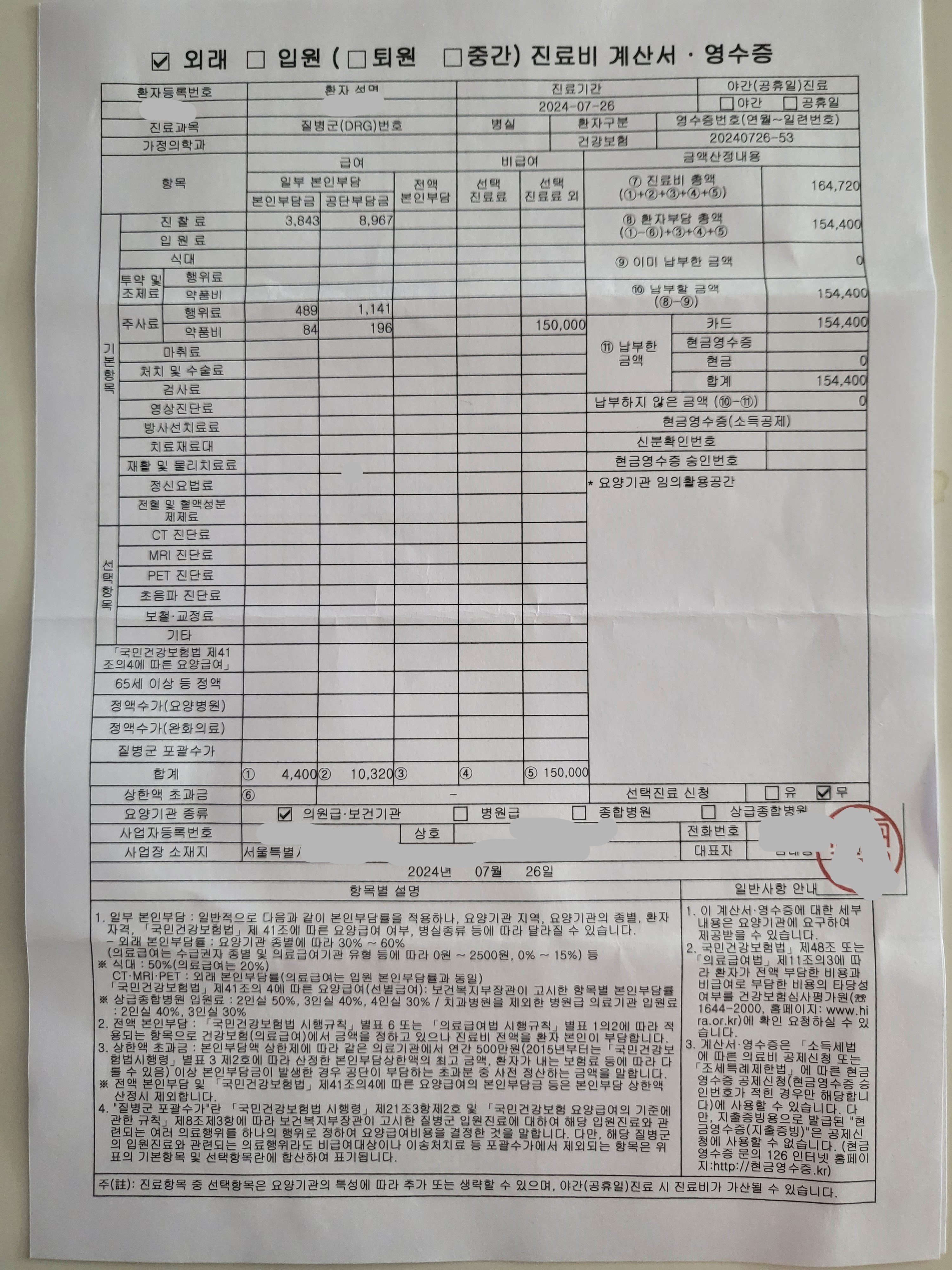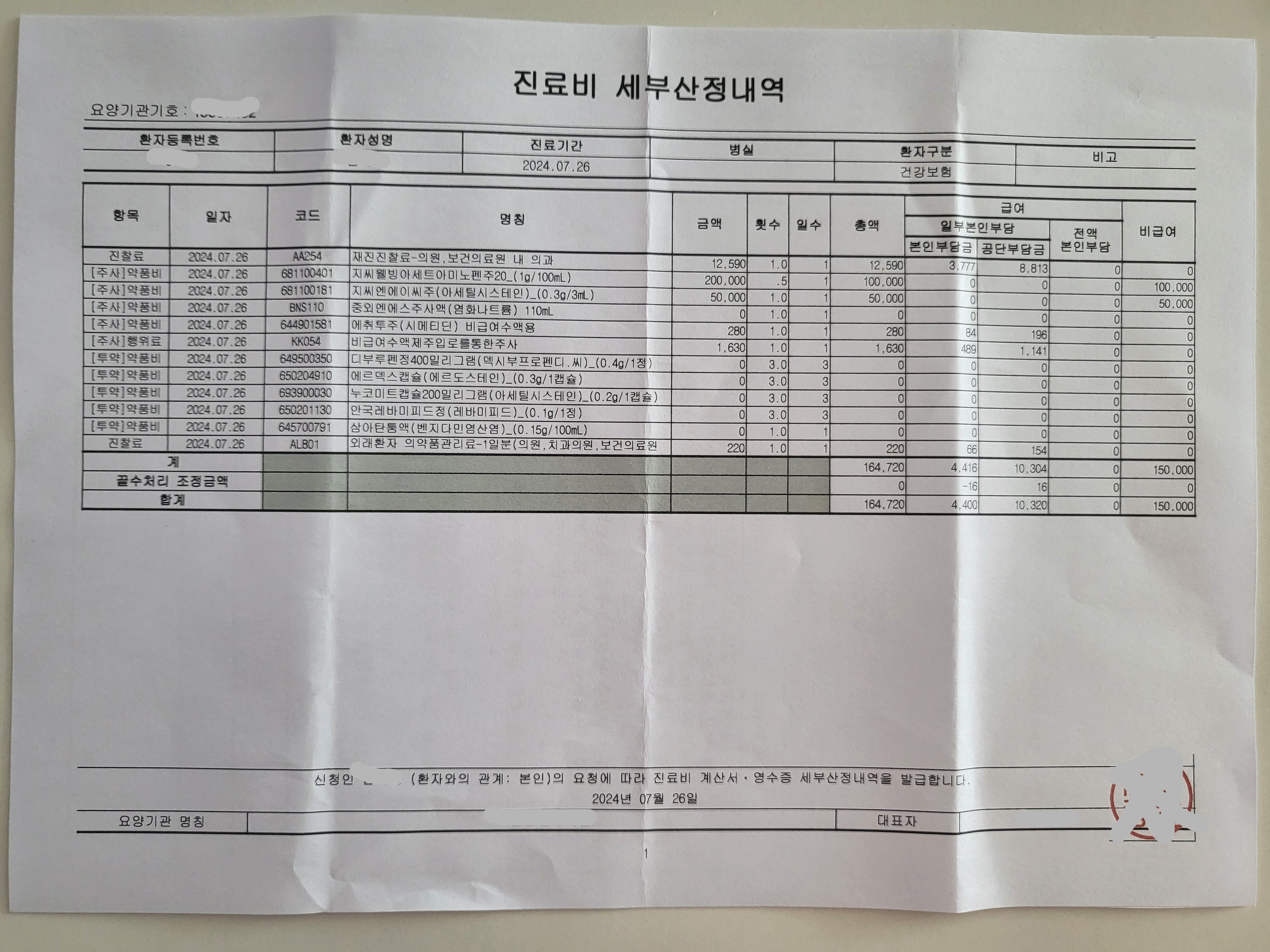 발급해주신 소견서, 진료비영수증, 세부산정내역을 제가 가입한 실손보험회사에 바로 청구 했고요.