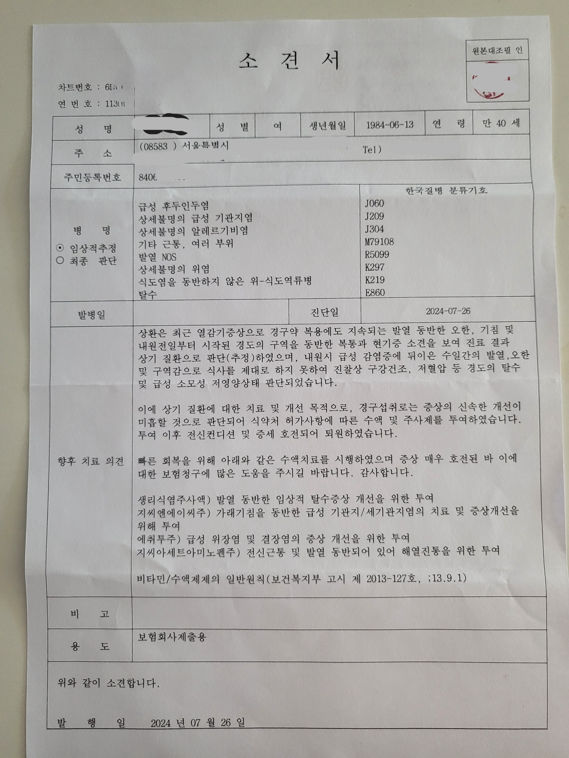 한여름 몸살감기로 수액맞고 실비청구하여 보험금 수령한 후기였습니다.