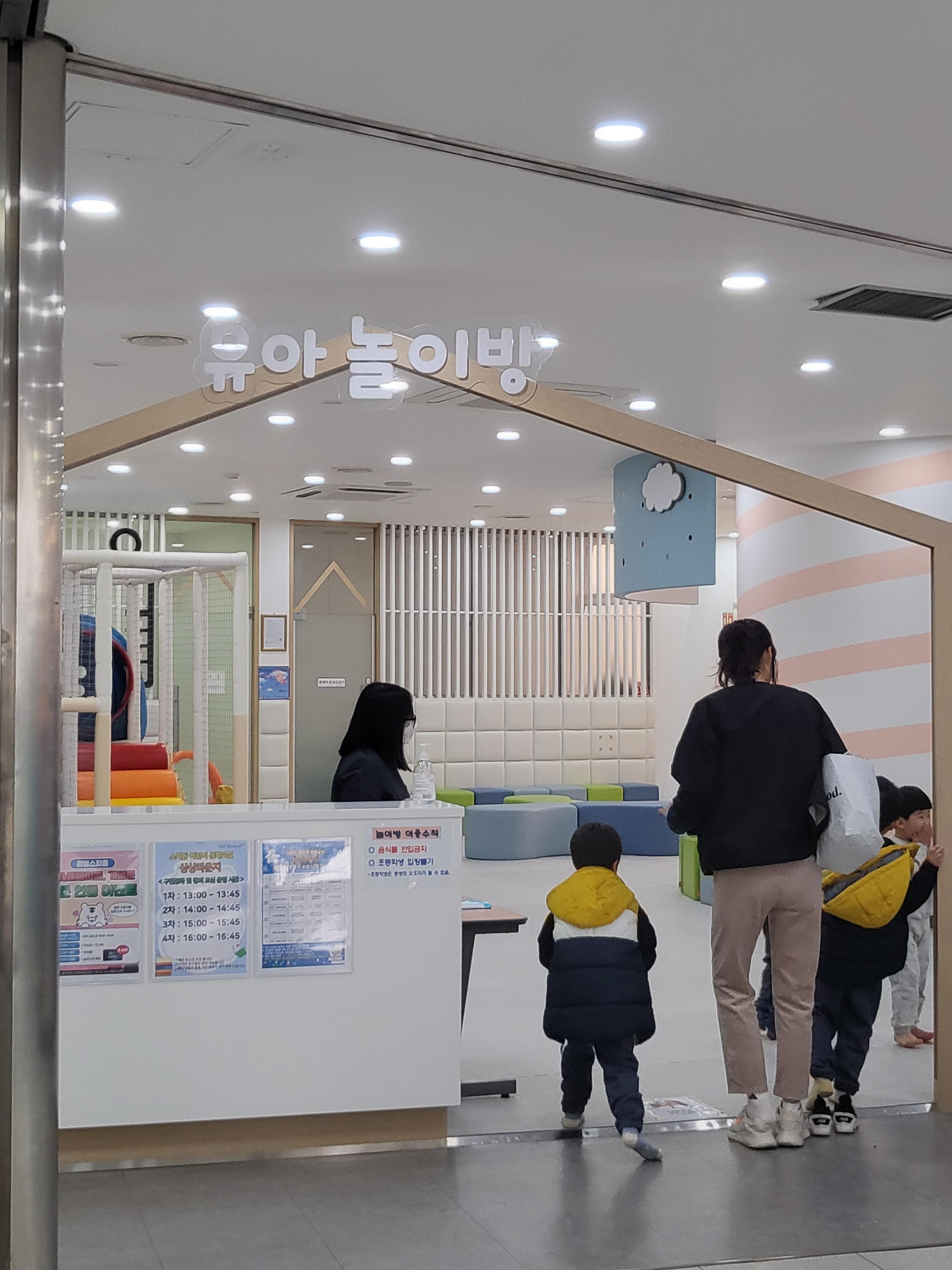 유아놀이방 바로 옆에 간단히 먹을 수 있는 분식류의 식당(카페테리아)도 있어서 배고프면 놀다가 또 놀이방 들어가도 될 것 같더라고요.