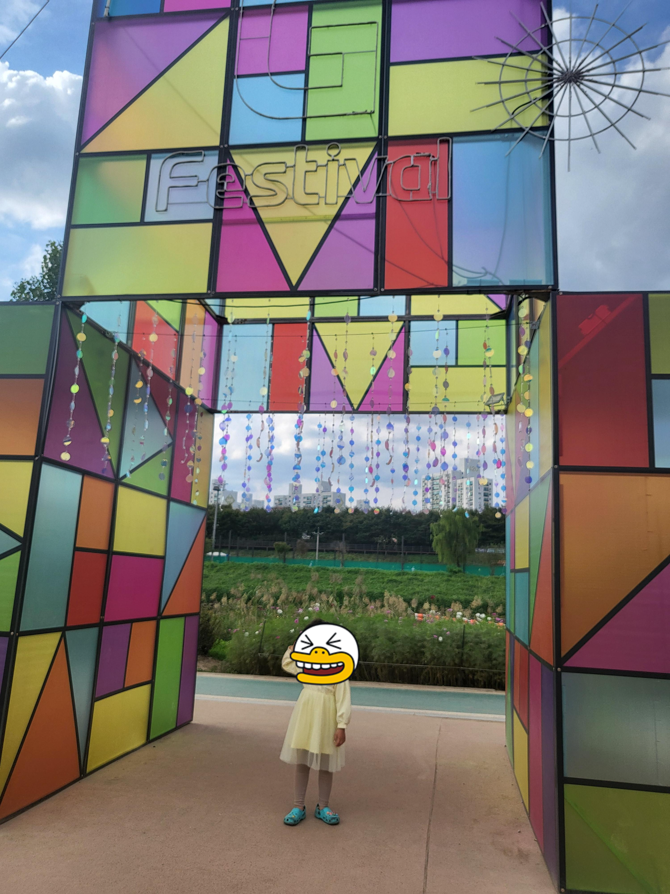 빛축제라서 낮보다는 저녁에 가야 훨씬 볼거리도 많고 이쁜데 저희는 빛축제보다는 먹거리장터, 어린이테마파크, 미니열차, 플리마켓 등이 열린다고 해서 낮에 호기롭게 갔죠. 그런데 이미 그러한 행사들은 9월말 개막할 때 3일정도 가량 진행한 거 였더라고요.