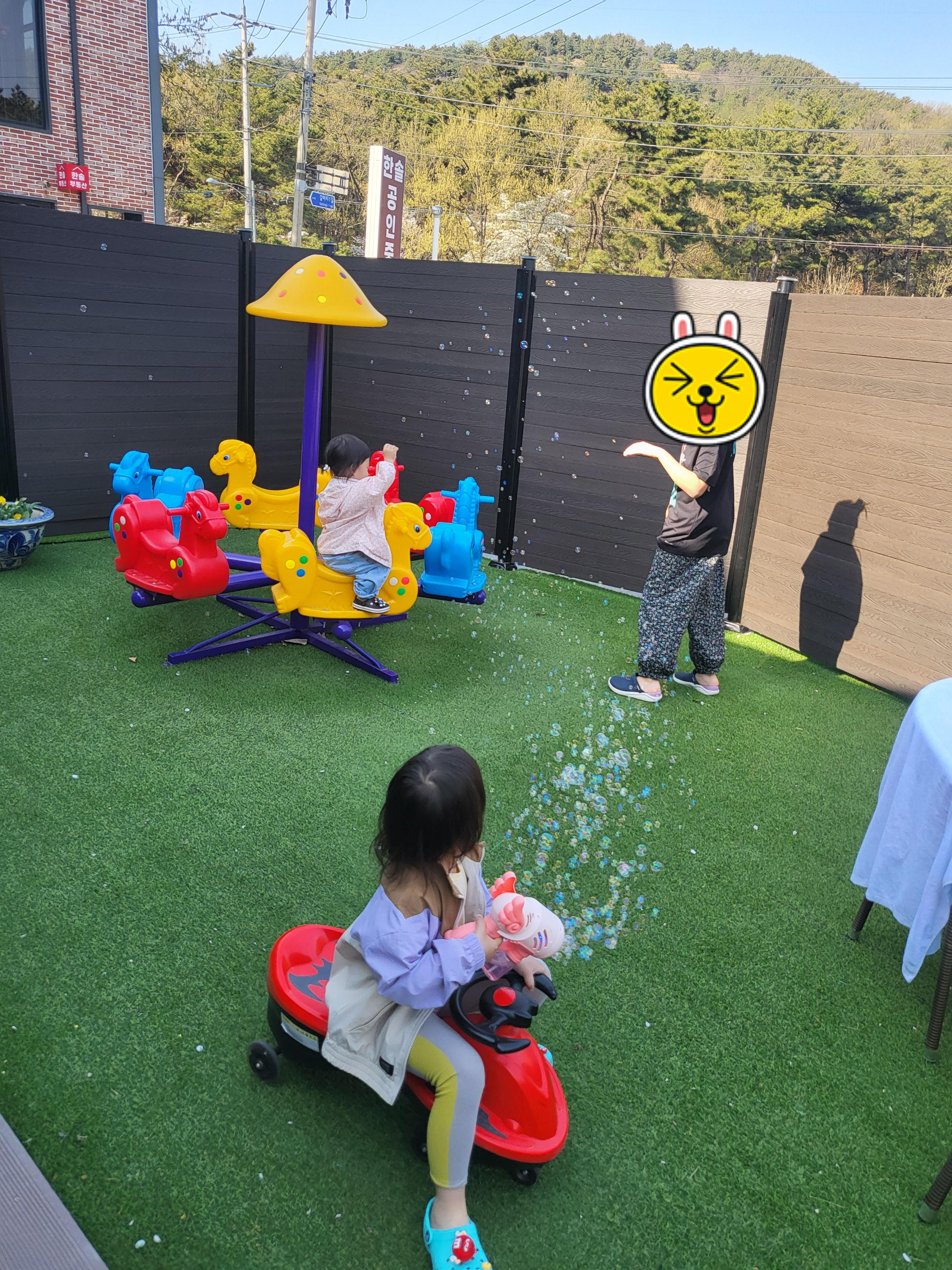 잔디마당에 타는 빠방이들도 두 세개 정도 있었어요.