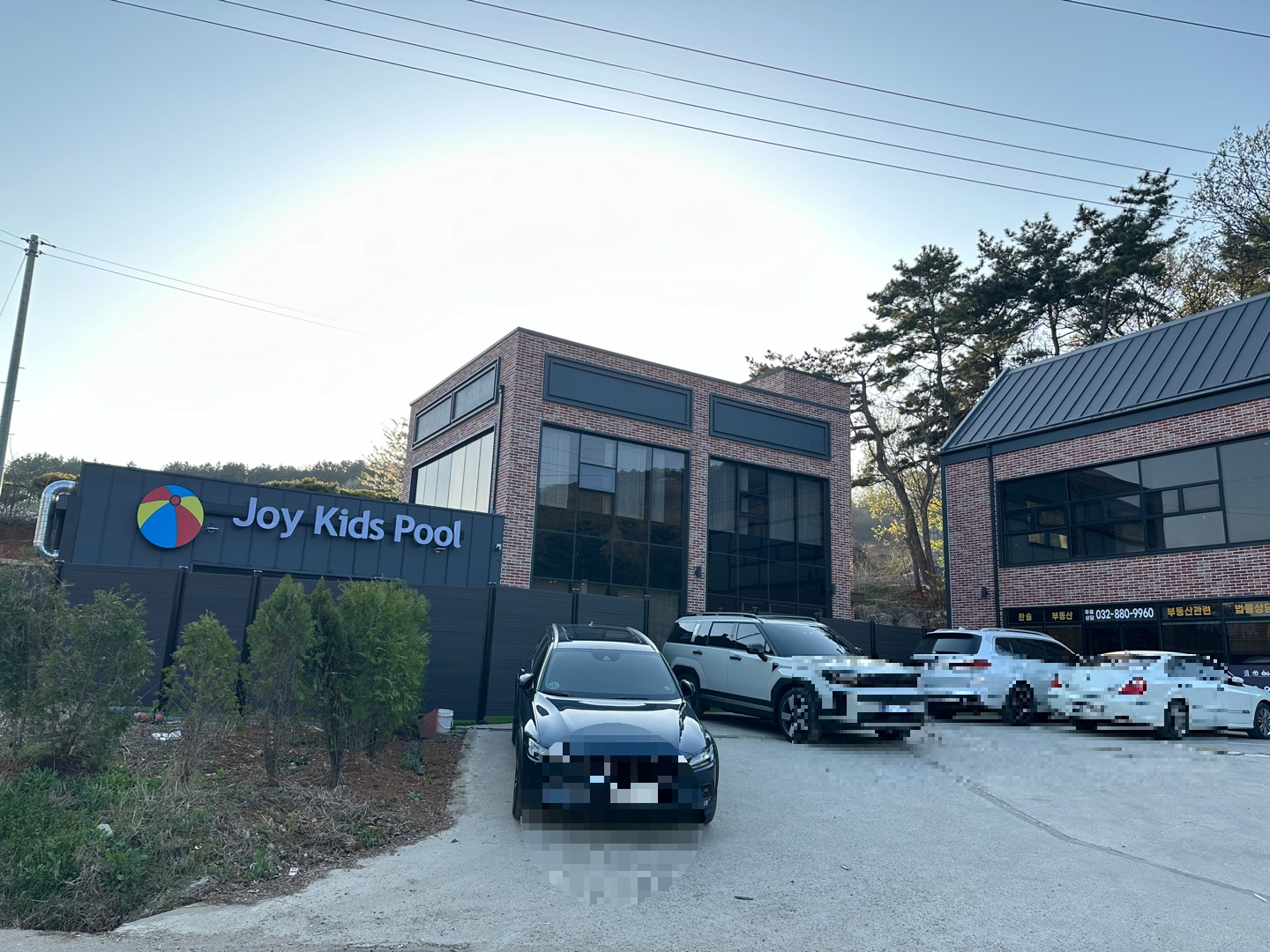 먼저 조이동 키즈풀 외관 모습입니다. 독채에 따로 떨어진 별도 건물이라서 차 4대가 들어가기에 아무런 어려움이 없었습니다.