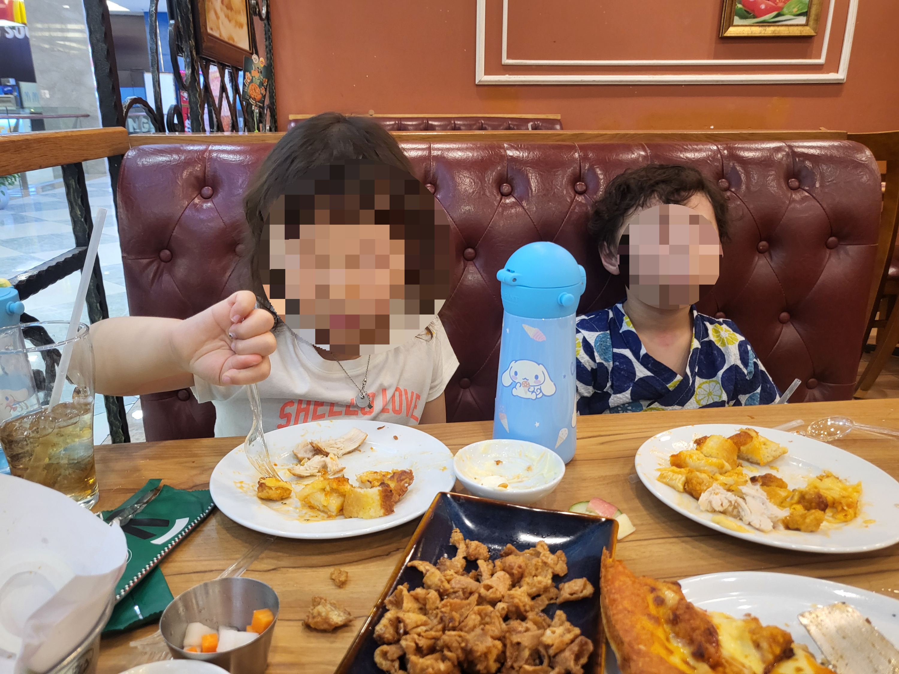 신나게 쇼핑몰에서 돌아다니다가 배고파서 몰 안에 있는 피자집에서 피자 시켜서 맛있게 먹고 지하에 윈마트에 들러서 필요한 것 사고 집으로 왔습니다.