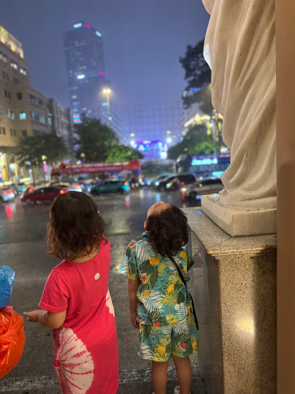 아이 셋을 데리고 만반의 준비를 하여 택시를 타고 호치민 시내로 갔어요.
