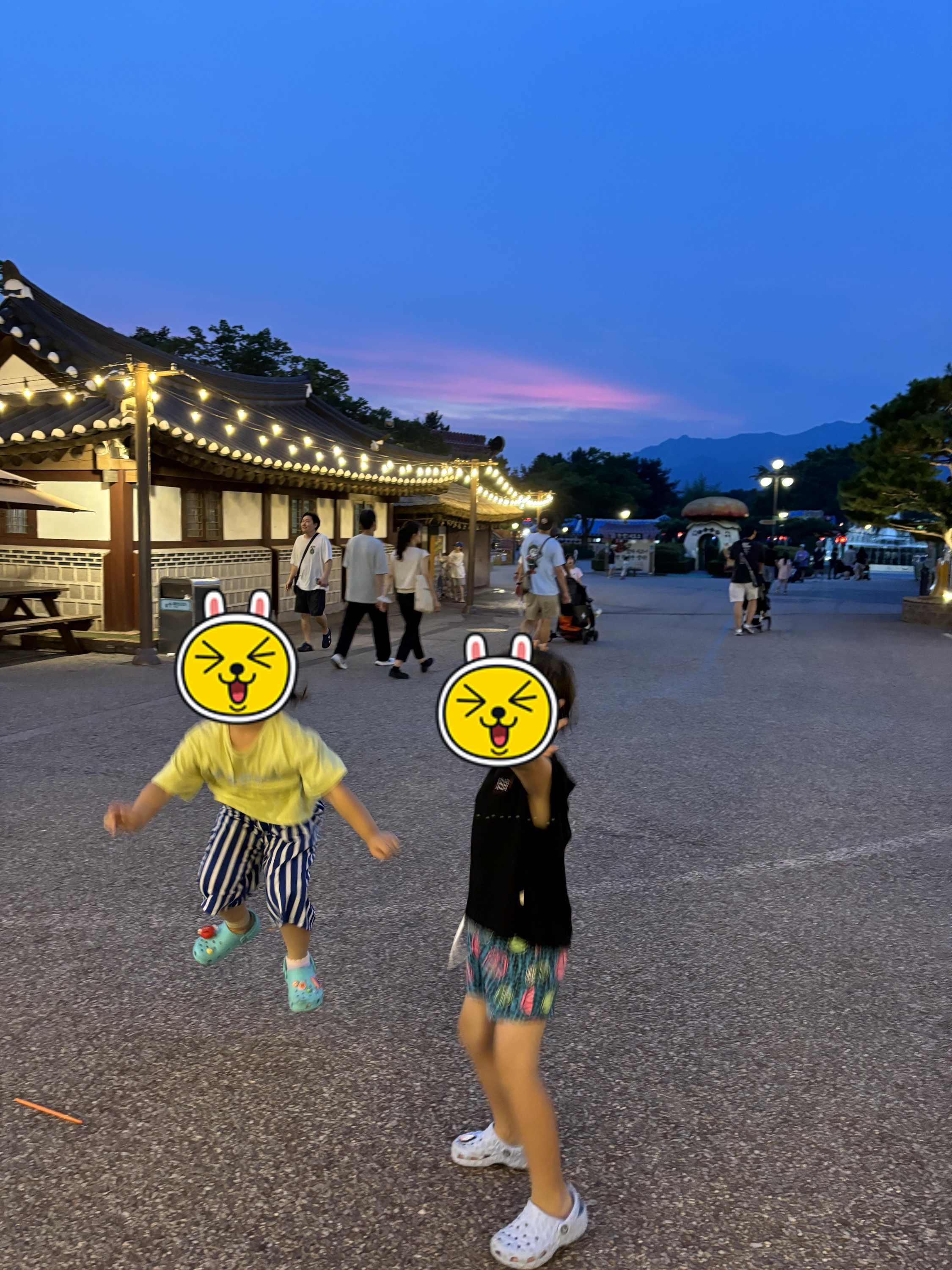 저녁이 되니 선선해져서 훨씬 다니기가 수월했고 저희 아이랑 같이간 팀의 아이도 신나게 뛰어다녔답니다.