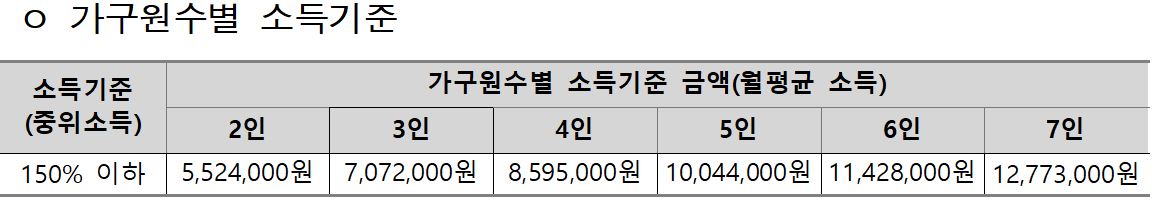 - 소득기준 월평균 금액 (*24년 서울형가사서비스 신청안내 공고문 참조자료)