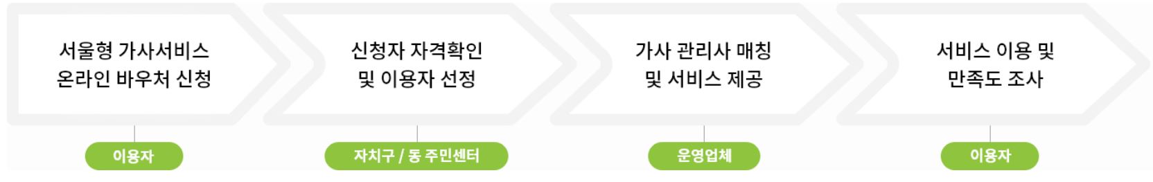 - 신청방법 : 서울형 가사서비스 홈페이지 온라인 신청만 가능
