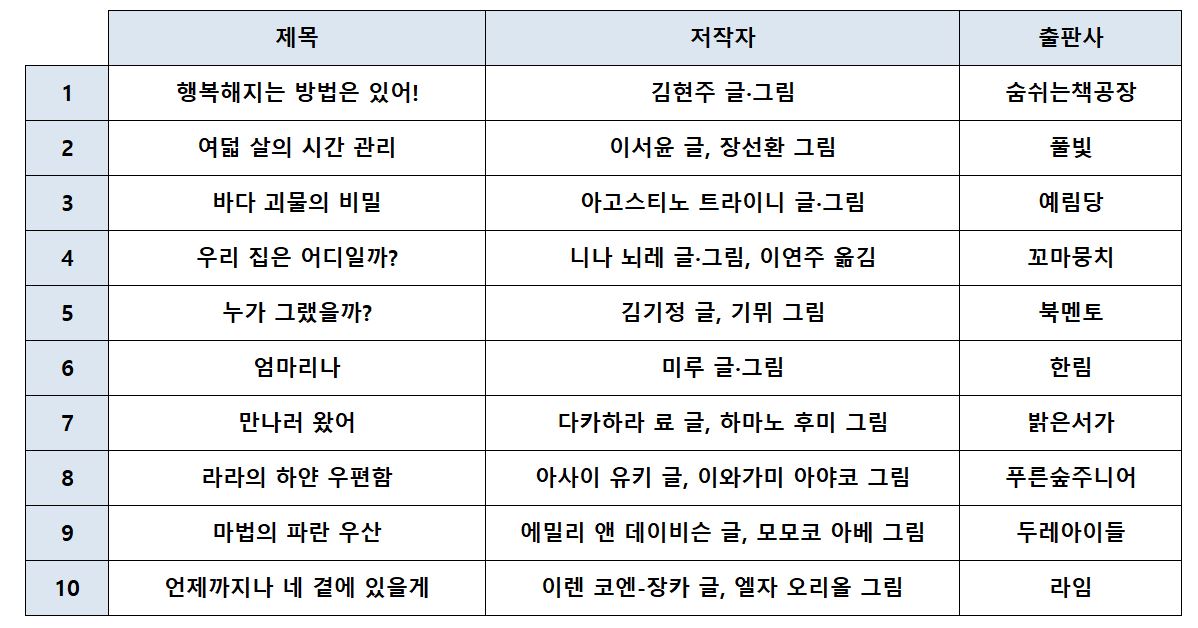초등학생 여름방학 추천도서 목록 (서울시 어린이도서관 홈페이지 자료 참조)