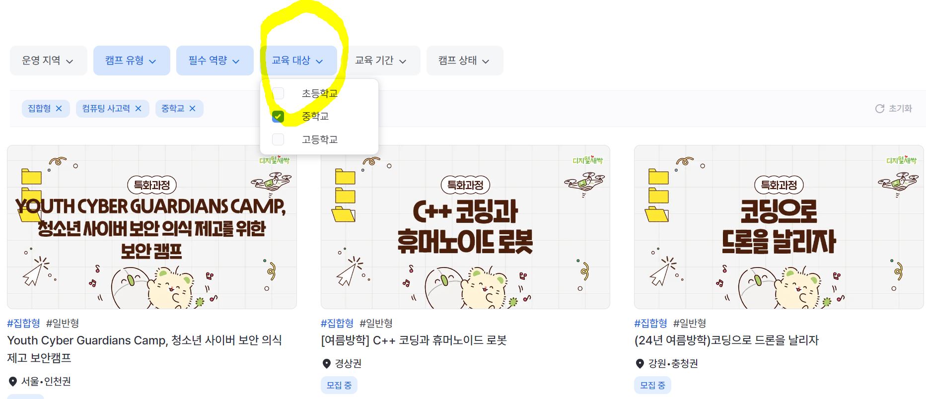 한국이 디지털 강국이잖아요!! 그리고 일상생활의 많은 부분이 디지털화 되고 있습니다. 이에 교육부와 17개 시도교육청, 한국과학창의재단에서는 변화하는 시대의 흐름에 발맞춰 자라나는 새싹들이 디지털 인재로 거듭날 수 있도록 몇 년 전부터 디지털새싹 캠프를 개최하기 시작했다고 해요.