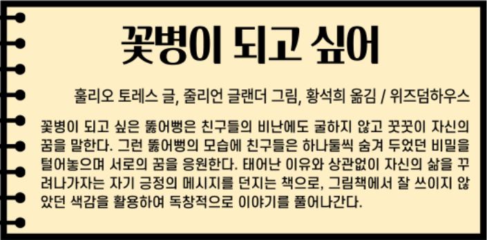오늘은 방학기간 동안 읽으면 좋은 추천 도서 목록을 살펴보았는데요, 사실 어린이집, 유치원 다니는 친구들은 방학이 길지 않아서 방학동안 저 목록을 다 읽진 못하겠지만 여름방학 동안만 읽으면 좋은게 아니고 유아들에게 좋은 내용을 담은 도서들이니 시기에 상관없이 참고하시면 좋을 것 같습니다. 조만간 초등학생 방학 추천도서 목록도 담아올게요.