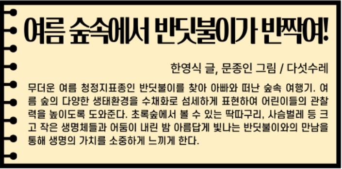 슬기로운 방학생활을 보내길 바라는 부모님들은 대부분 자녀가 방학 때 책이라도 많이 읽길 바라실 거에요. 그런데 막상 어떤 책을 골라줘야 재미도 있으면서 아이에게 도움이 될지 책을 선택하는 데에 있어서 어려움이 있을 수도 있을 것 같아요. 그래서 오늘은 서울특별시 어린이도서관 홈페이지에 사서가 추천하는 여름방학 추천도서 목록이 있어서 도움이 될 것 같아서 가져왔습니다. 오늘은 먼저 유아편 권장도서 목록 입니다.