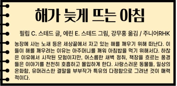 추천도서 목록을 보면 대부분 발행일이 24년인 것들이 많더라고요. 저도 유아 자녀가 있는데 많고 많은 책 중에 뭘 읽어줘야 할지 몰랐는데 위에 정리한 추천도서 목록을 참고해서 근처 도서관에서 대여해보려고 합니다. 책 광고가 아닌 도서관 사서님께서 추천하는 도서라고 하니 뭔가 신뢰가 가네요!