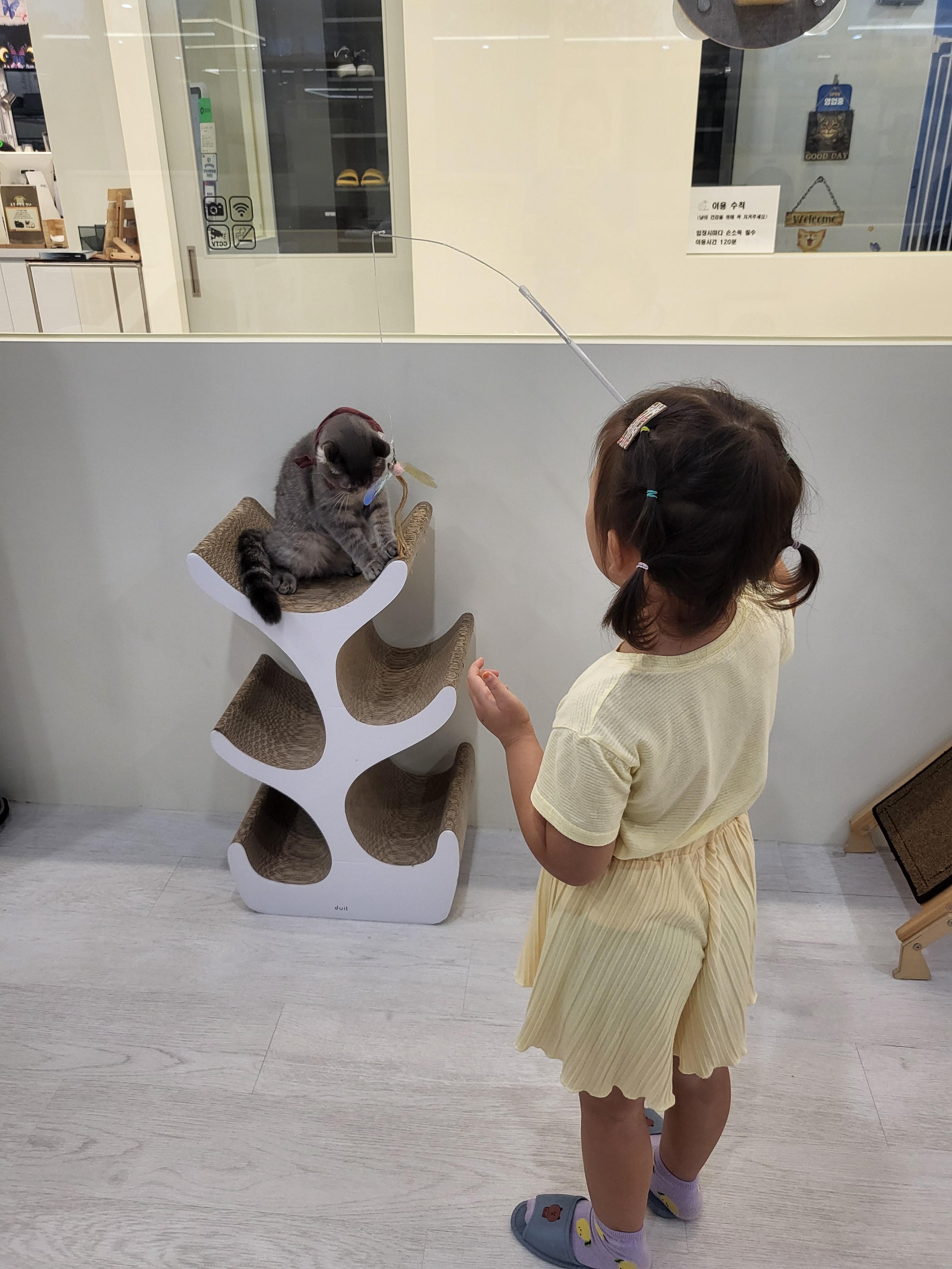 개인적으로 저는 고양이를 좋아하지도 싫어하지도 않는 편이지만 어제 가보니 고양이는 참 매력적인 동물인 것 같아요. 동물을 별로 안좋아하는 남편 때문에 집에 데려오진 못하겠지만 이런식으로라도 아이에게 동물을 접하게 해주는 건 좋은 것 같아요. 동물을 배려하는 마음도 생기고 함부로 대하지 않아야 한다는 것도 알려줄 수 있으니깐요.