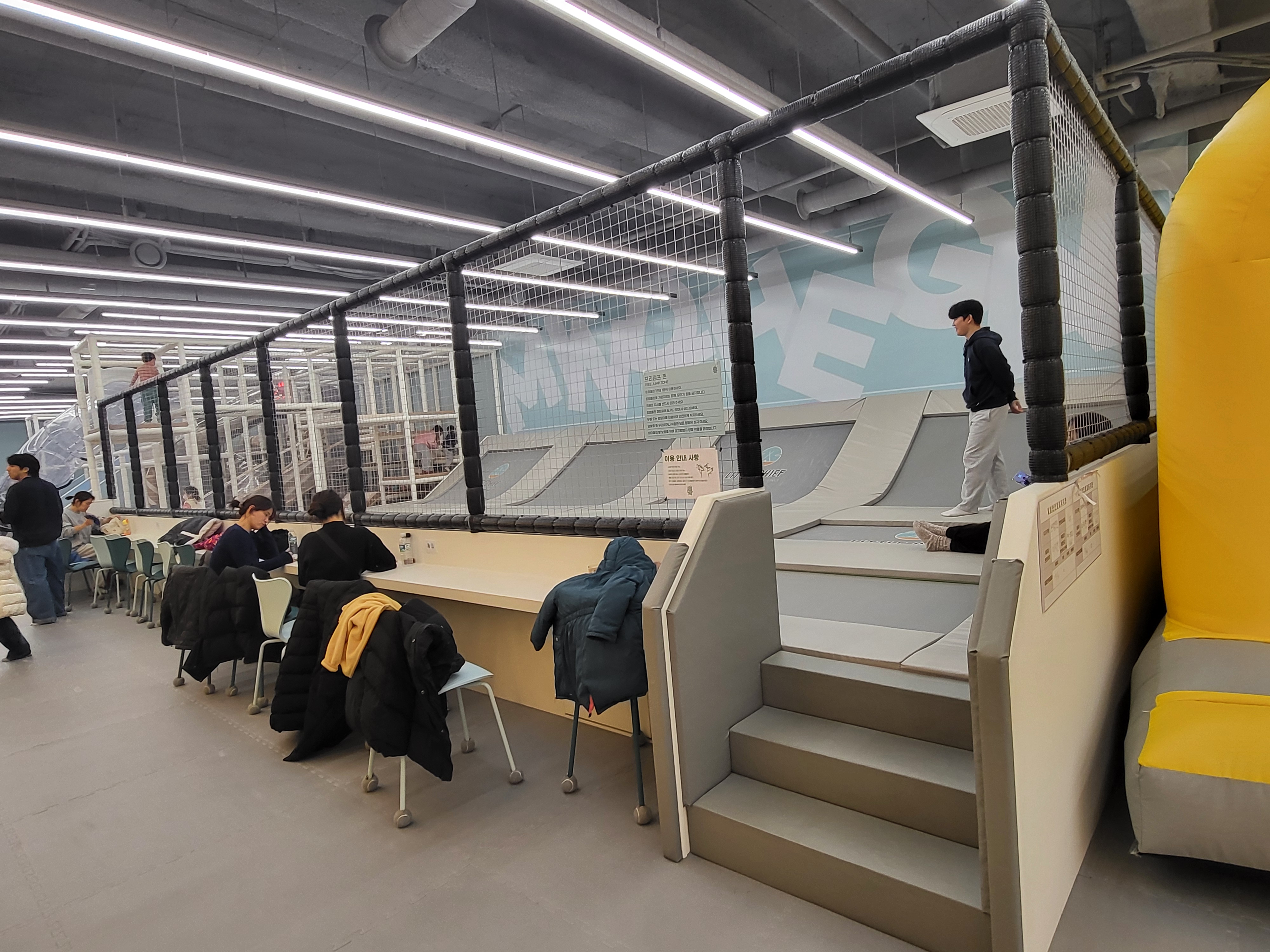 그리고 중간에 앉아있을 수 있는 테이블이 꽤 많이 비치 되어 있어서 자리를 맡는데에는 어려움이 없었어요.