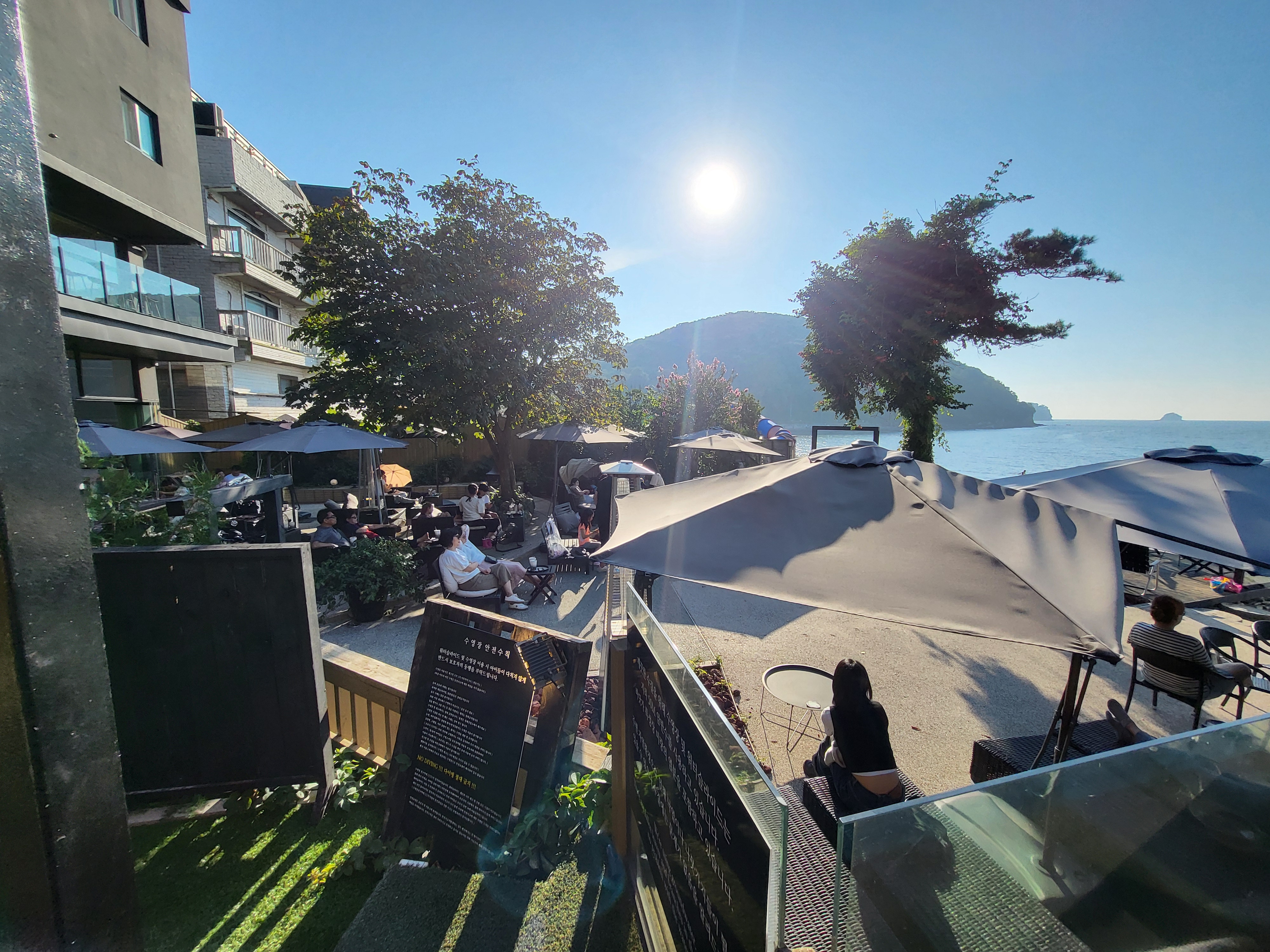 카페엔 바다를 바라보며 이렇게 여유롭게 시간을 보내는 연인들이 많더라고요.