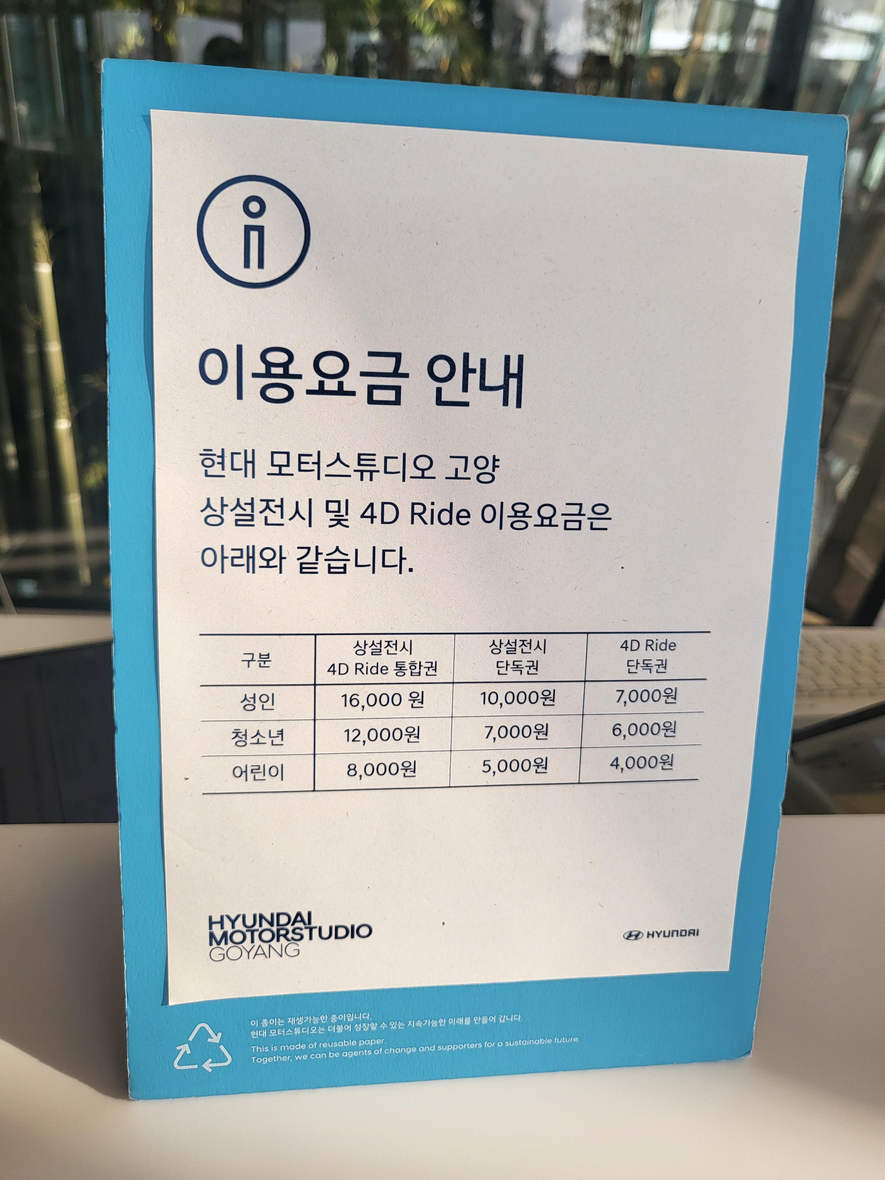 현대모터스튜디오 고양 상설전시 이용요금