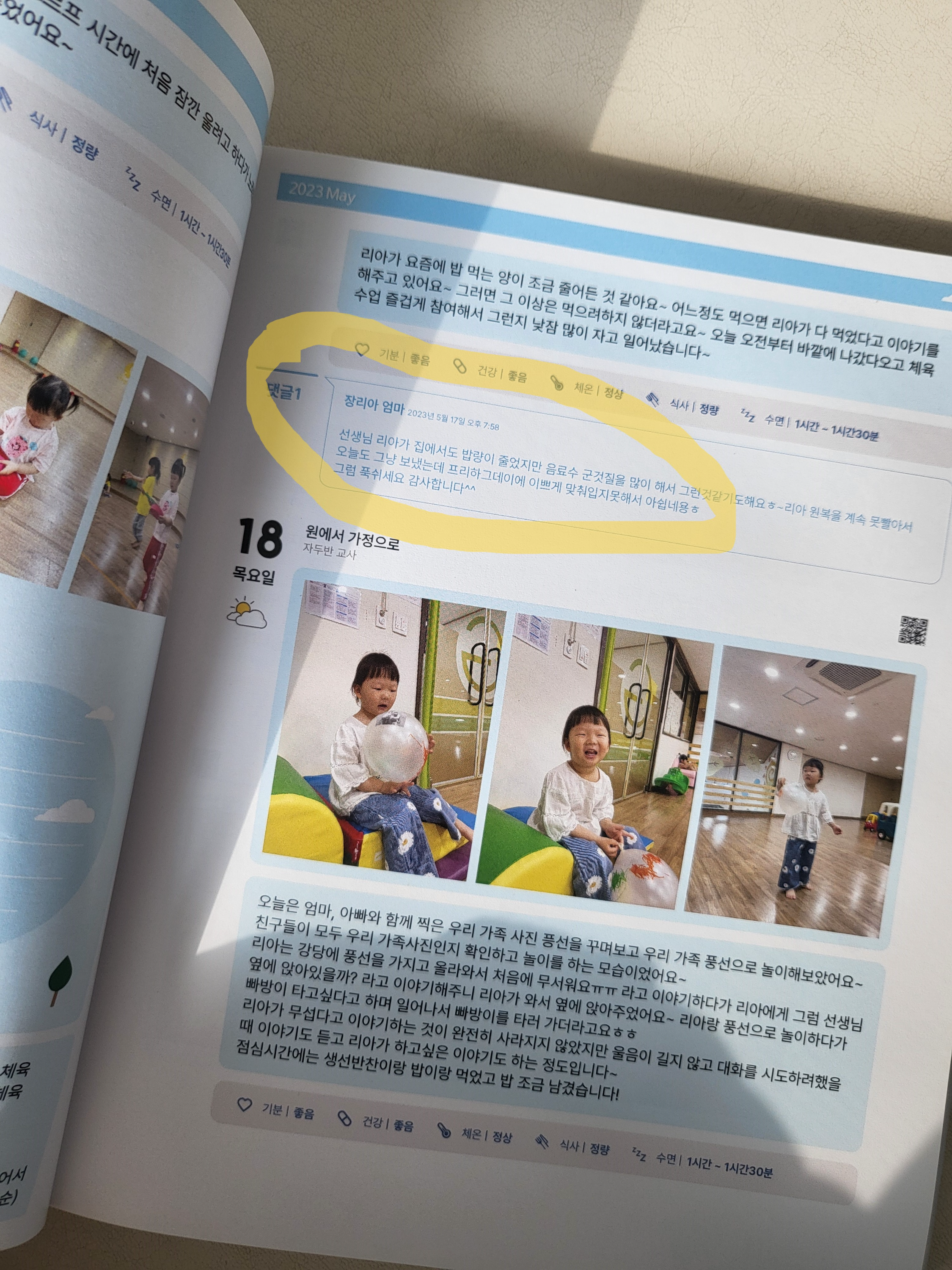 선생님 써주신 알림장 내용을 지금 다시 보면 참 재밌더라고요. 사진만 있는 것보단. 그날의 아이 활동, 기분, 어떤일이 있었는지 다시 읽어보면 웃긴 것들도 많아요. 우리 아이가 이 당시엔 이런말을 했구나. 등등요..