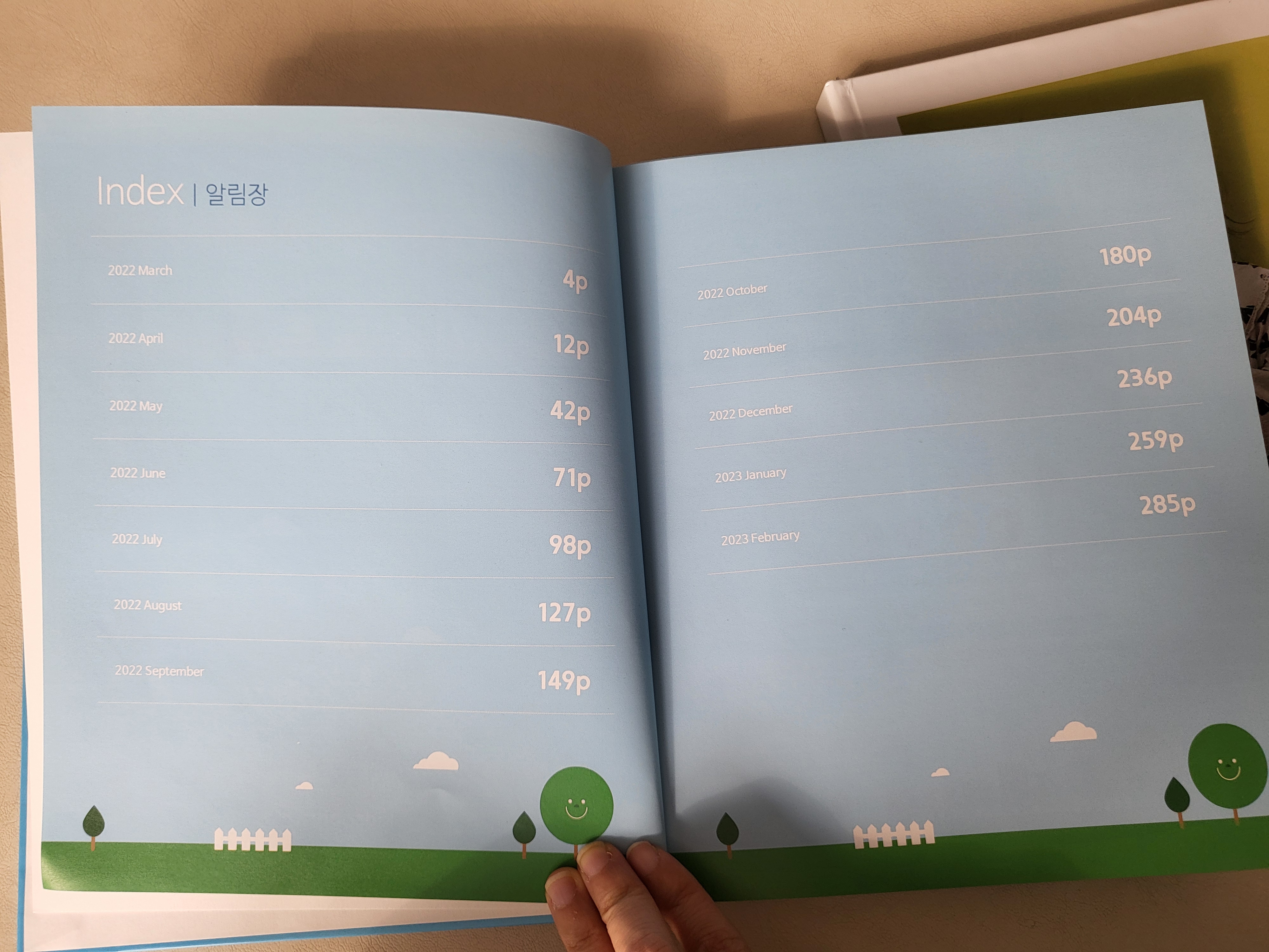 이렇게 하드커버를 넘기면 목차가 나오고 넘기다보면 월별로도 나뉘어 있어요.