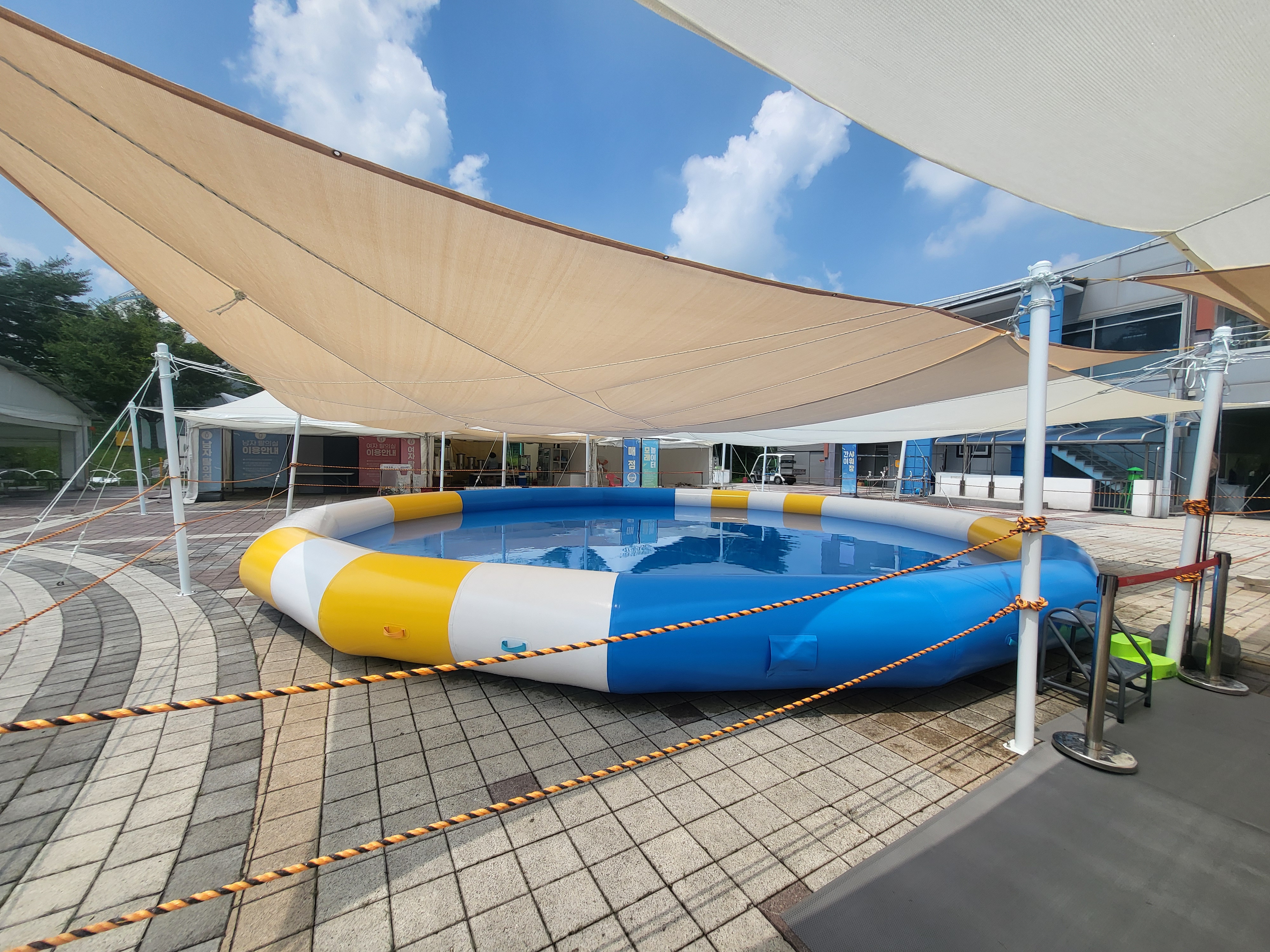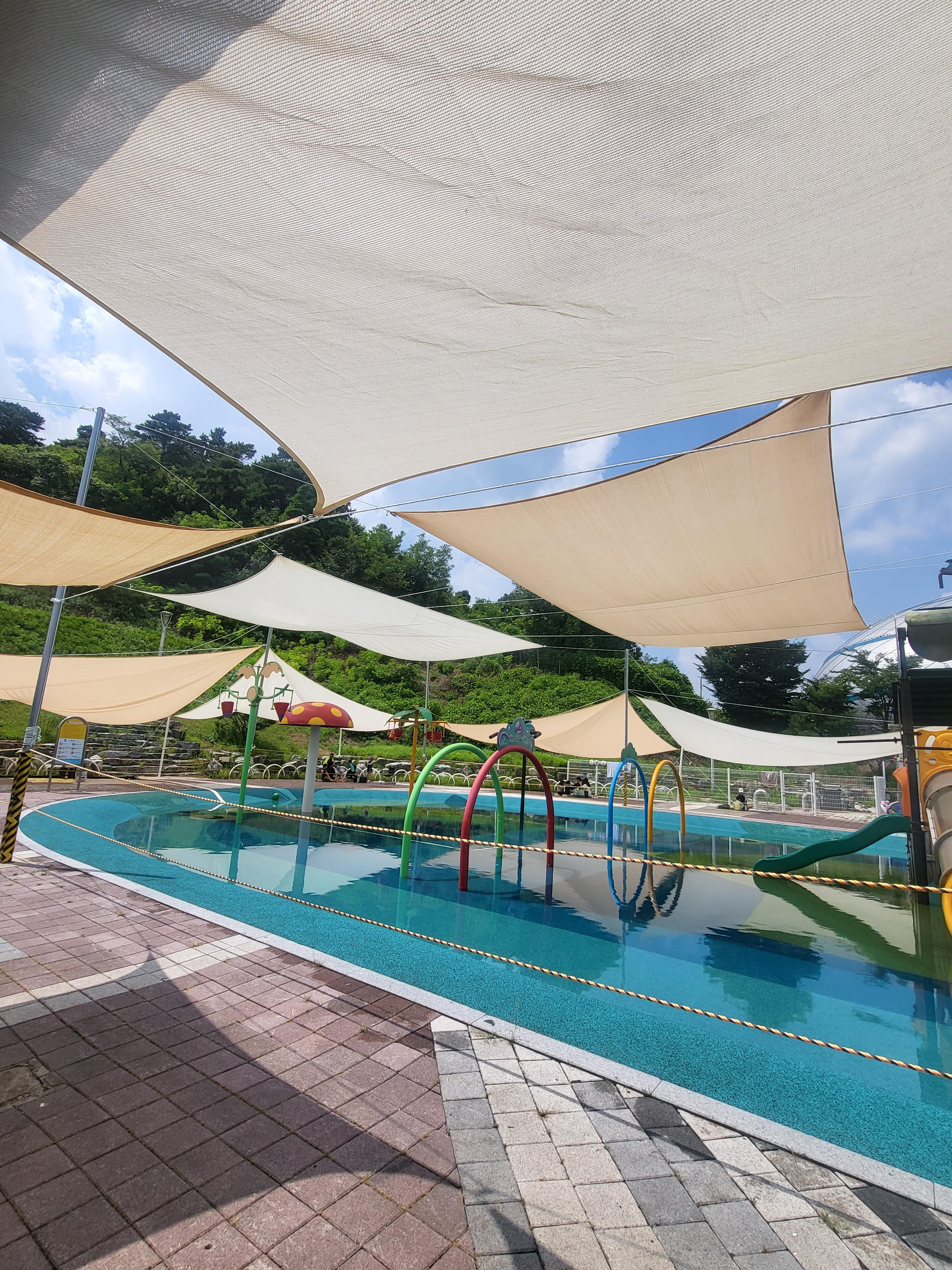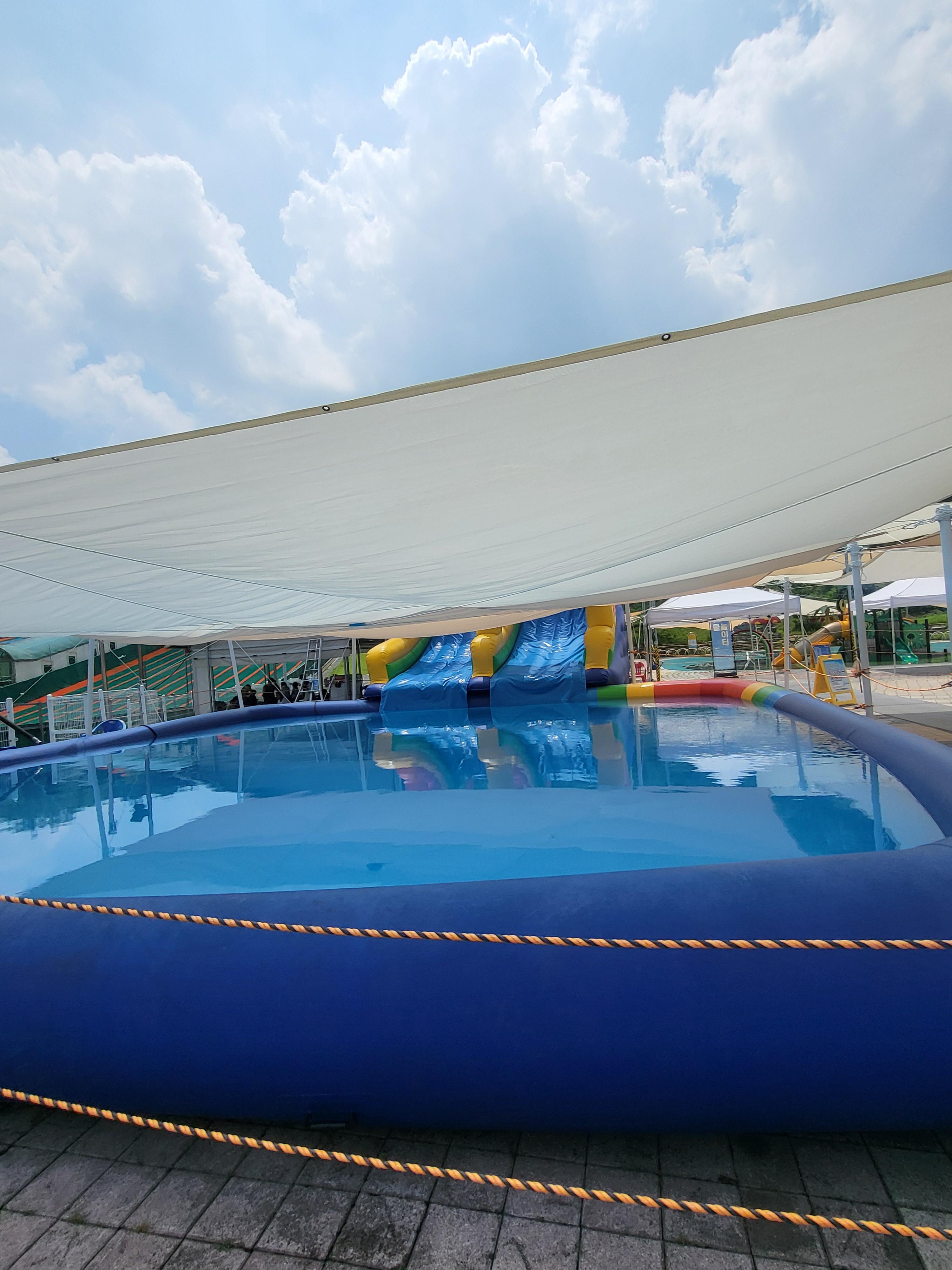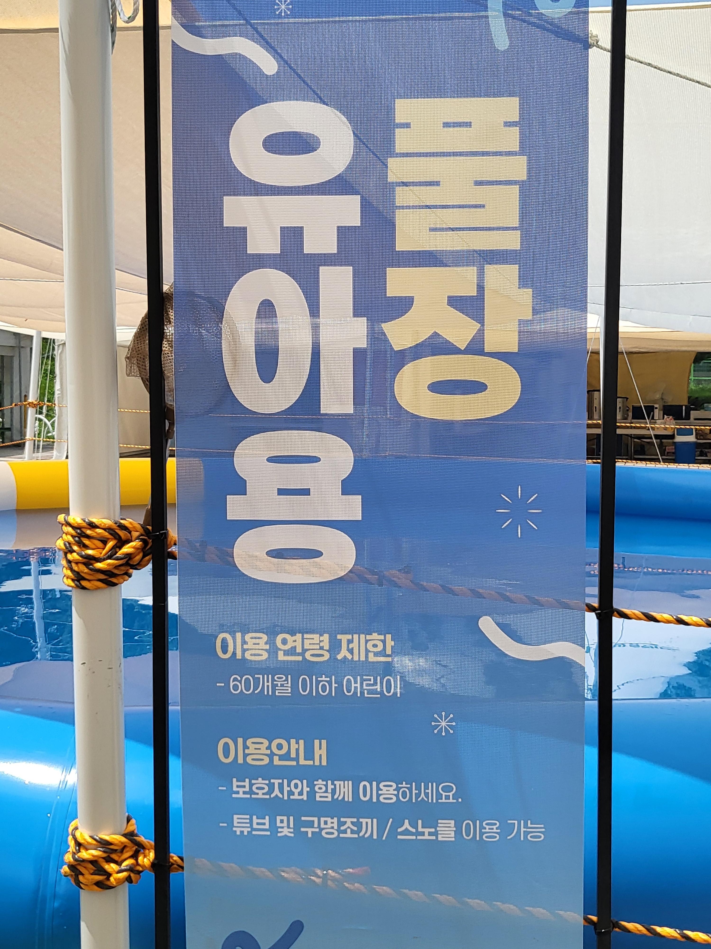 물놀이터 말고도 이렇게 어린아이들만 놀 수 있는 공간도 있어요. 60개월 이하 어린이들만 입장 가능합니다. 물놀이터보단 유아용 풀장이 더 여유롭긴 했지만 아무래도 여기서만 놀기엔 좀 심심한 느낌이랄까요. 뭐 저희 아이는 잘 놀았지만 물놀이터가 더 전 재밌더라고요. 수심이 30 밖에는 안되어서 아장아장 걷는 아기들도 엄마 손 잡고 잘 놀더라고요. 제작년에 갔을 땐 없었는데 새로 생긴 것 같아요.