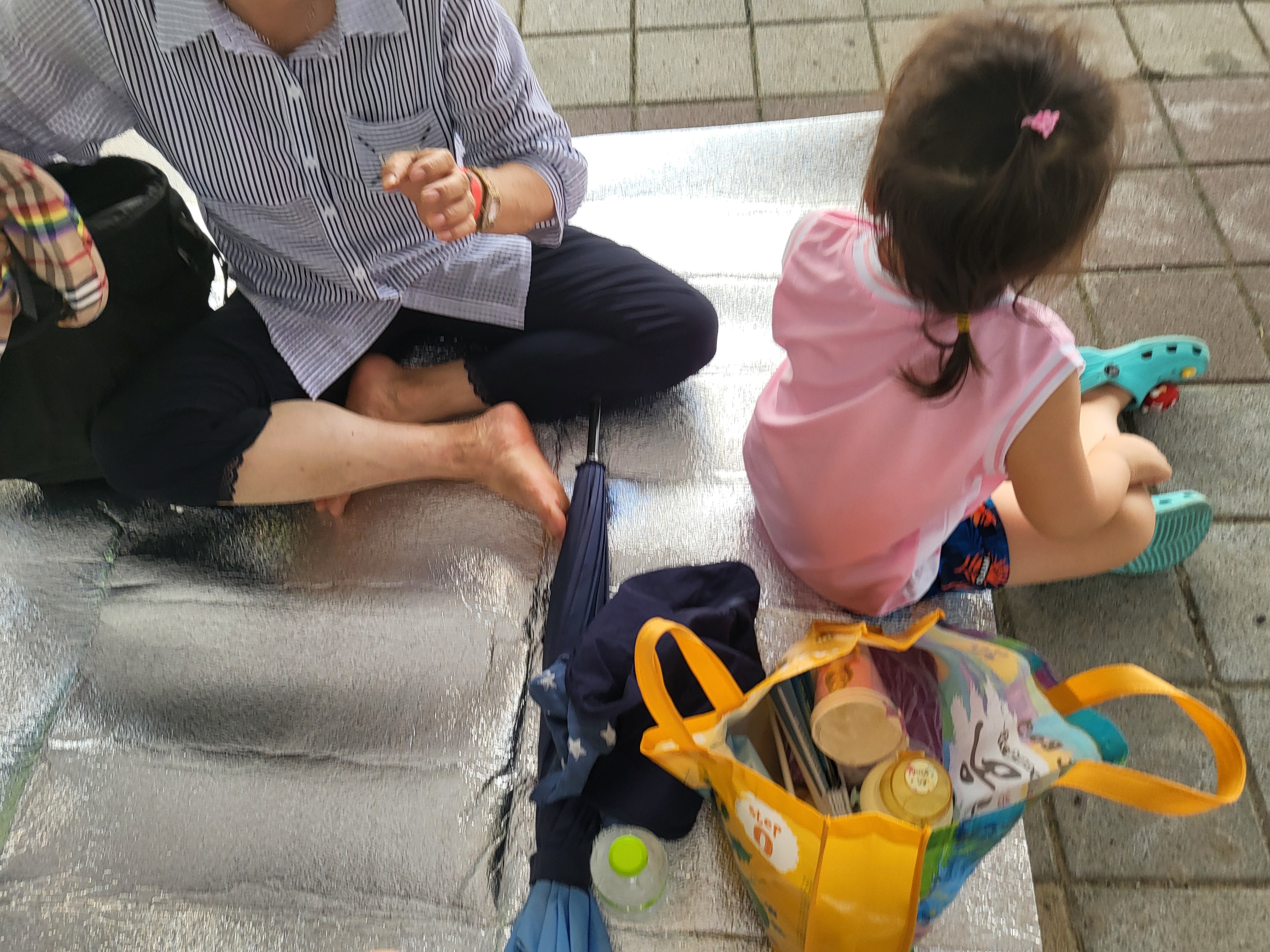 중간중간 쉬는 시간이 15분씩 있는데 돗자리 허용이 되어서 이렇게 돗자리를 깔고 쉴수 있어요. 주말이라 돗자리 깔 자리가 없을 까바 조마조마 했는데요 그래도 다행히 자리가 남아서 이렇게 편히 앉아서 쉬는시간마다 아이스크림도 먹고 음료수도 먹고 하였습니다.