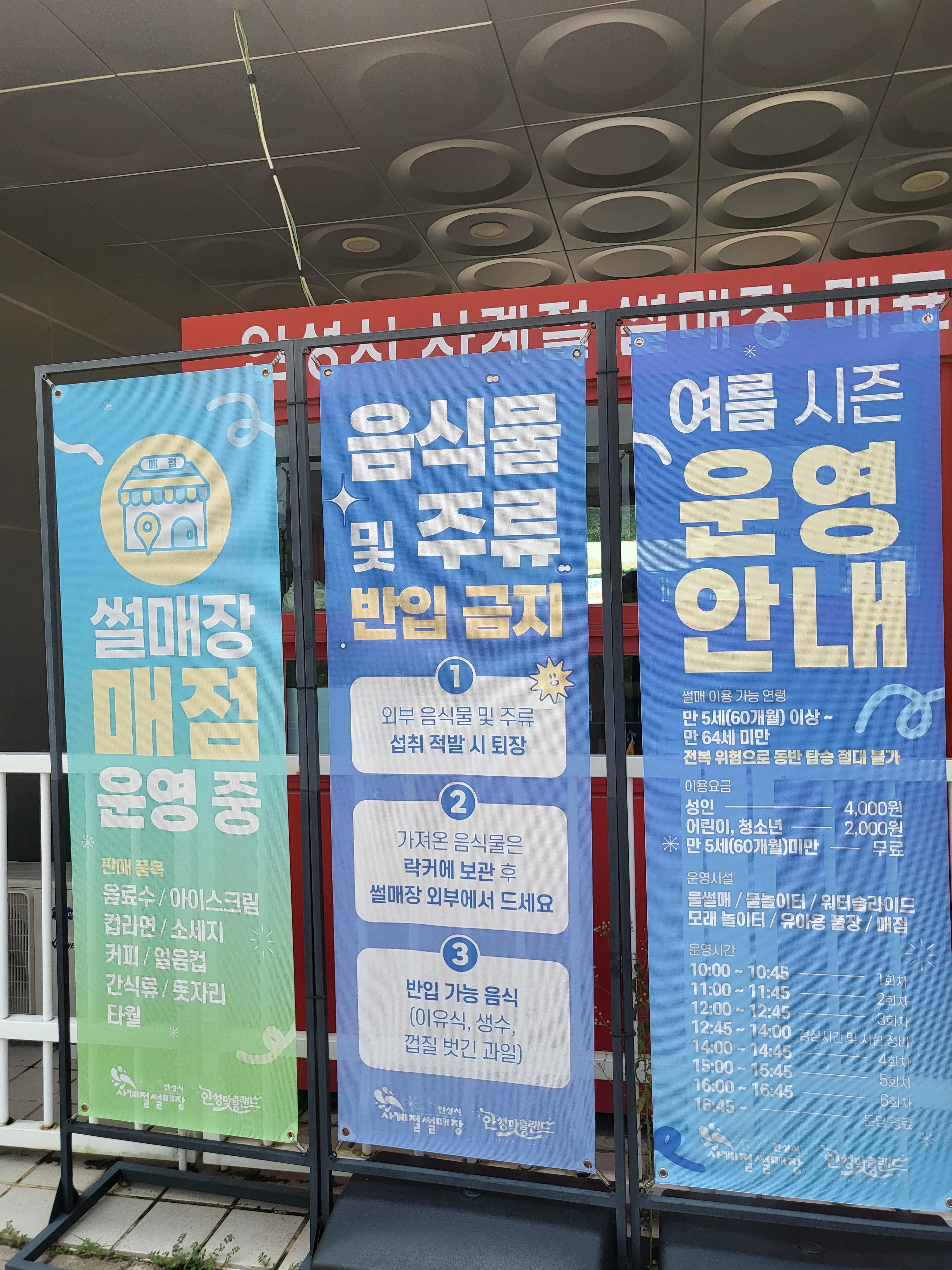 저는 작년 정보를 잘 못 보고 가서 점심시간이 1시에 끝나는 줄 알고 1시에 맞춰서 갔는데 알고 보니 2시까지 더라고요. 그래서 2시까지 돗자리에 앉아서 시간 떼우다가 물놀이를 시작했어요. 점심시간 꼭 잘 확인하고 가세요! 그리고 점심시간에도 입장은 가능합니다. 물놀이 및 시설이용이 금지일 뿐이에요. 매점도 이용은 가능해요.