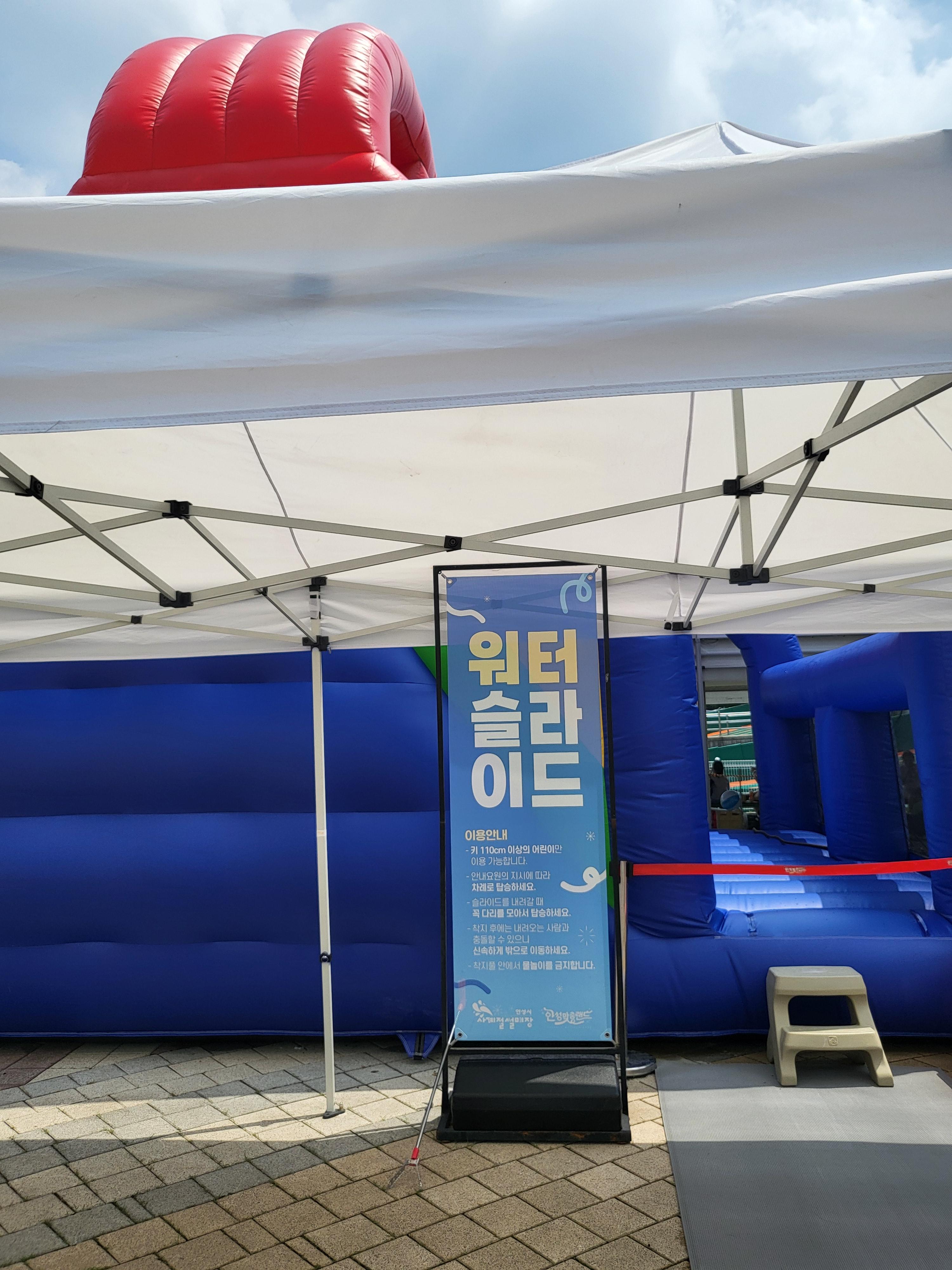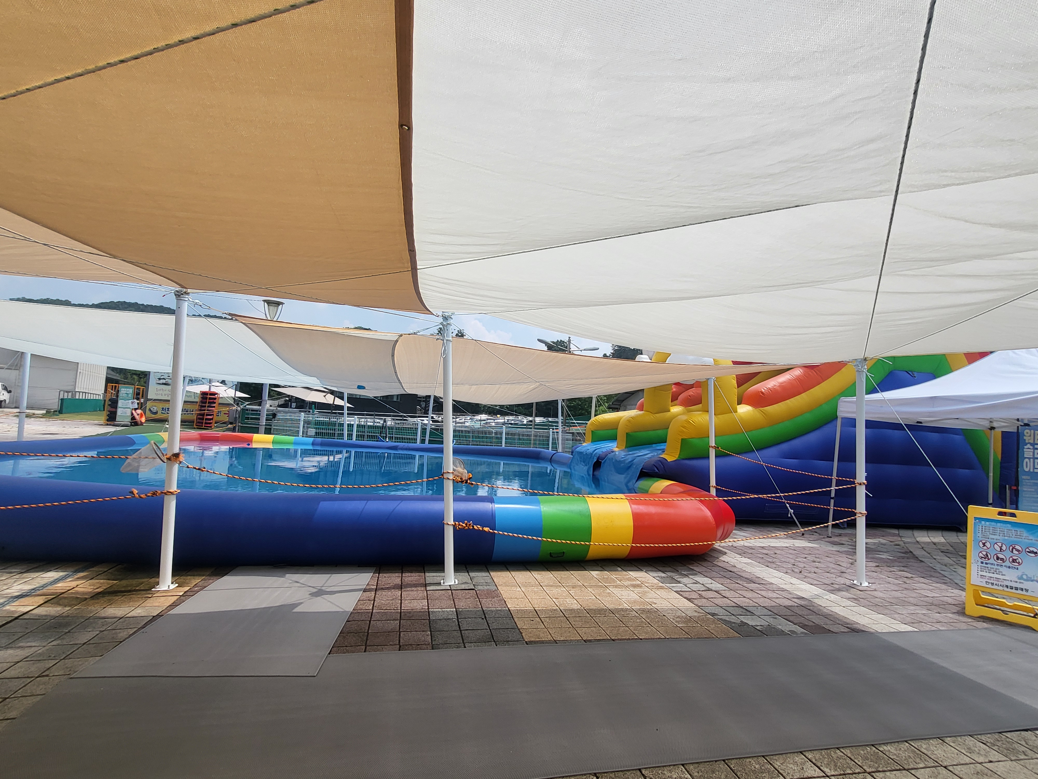 워터슬라이드도 참 인기가 많더라고요. 저희 아이는 키가 큰편이라 탈 수는 있었으나 겁쟁이라 무섭다고 근처에는 가지도 않더라고요. 줄이 많이 긴 편은 아니라 그래도 조금만 줄 스면 탈 수 있어요. 워터슬라이드도 제작년엔 없었는데 생겼더라고요. 전반적으로 많이 좋아진 것 같아요.