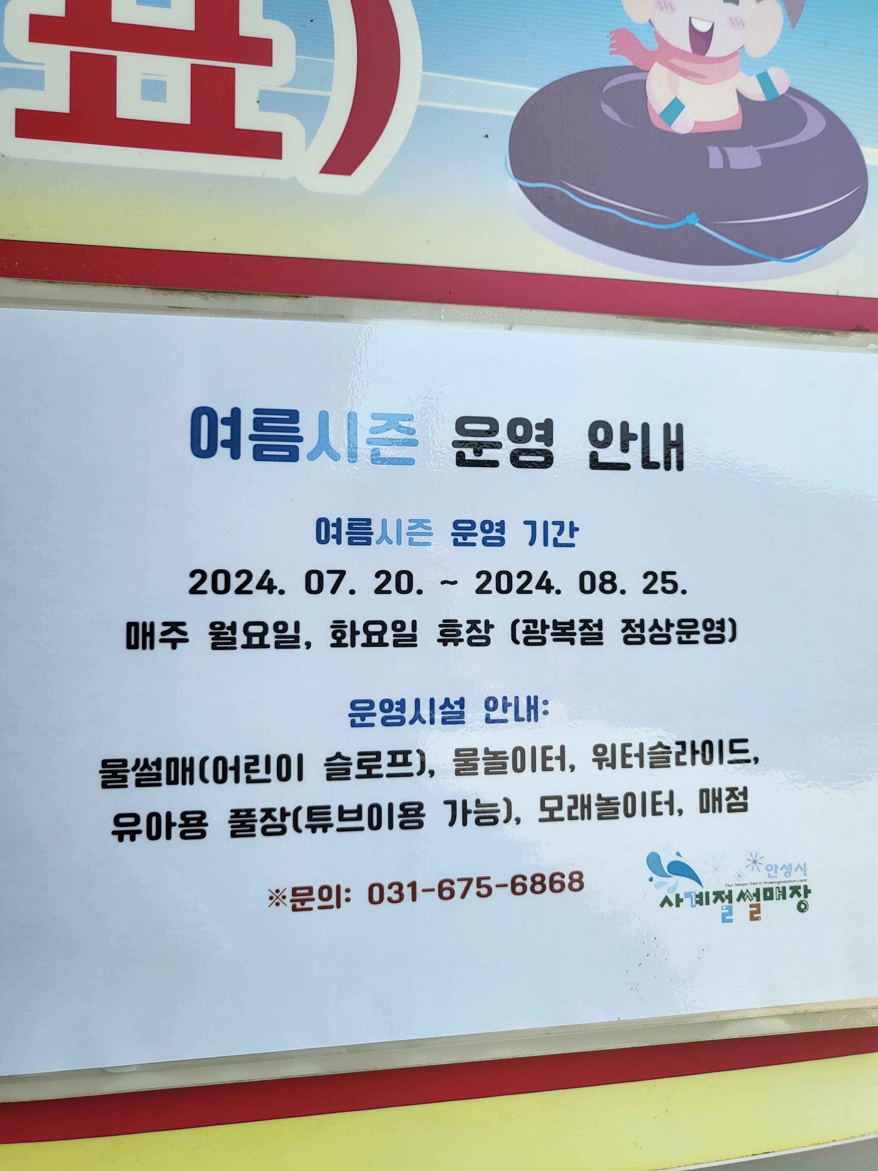 지금까지 안성맞춤랜드 사계절썰매장에 있는 물놀이장 이용후기 였습니다. 근처에 사시거나 근처에 가실일 있으시면 가격도 저렴하고 나름 아기자기 잘 되어 있어서 하루 놀기 좋으실 것 같아요. 방학 끝나기전에 한 번 즐거운 시간 보내고 오세요. 요즘 너무 더워요. 더위 조심하시고 몸관리 잘하세요