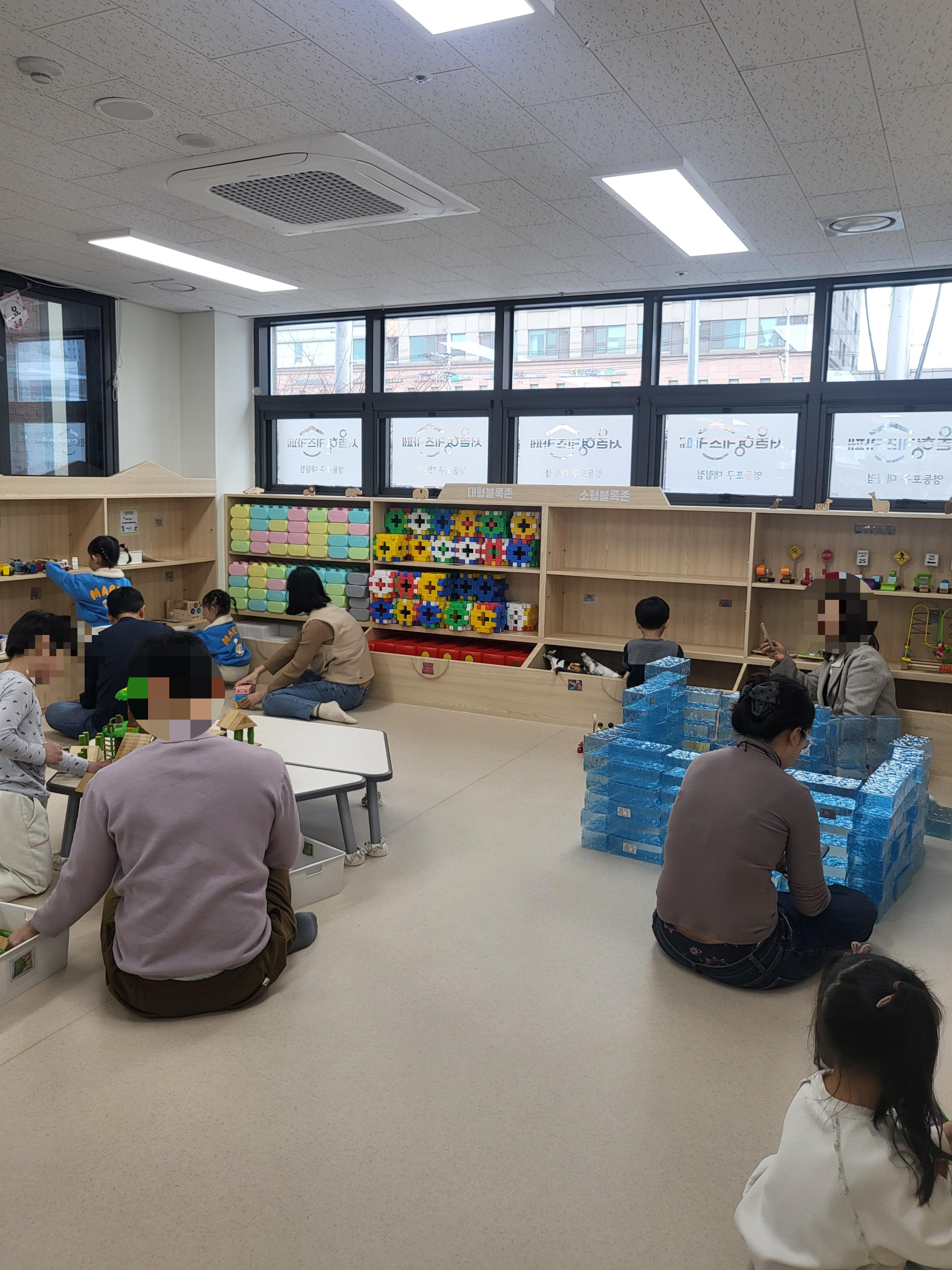 블럭, 돌봄공간, 드로잉놀이 공간이 있었습니다.