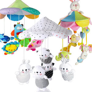 아기 침대에 걸거나 바닥에 세워두는 모빌은 아기의 시각 발달을 돕고, 부드러운 음악은 아기를 진정시키는 데 도움을 줍니다. 기본적으로 처음에는 흑백인형이 달려있고 개월수가 조금 지나면 컬러인형들로 바꿔 줄 수 있는 것이 좋습니다.