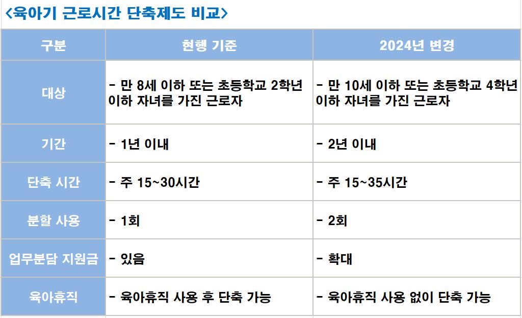 <2024년 육아기 근로시간 단축제도 변경사항>