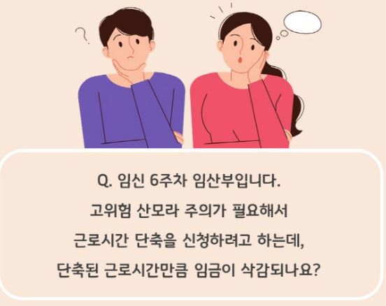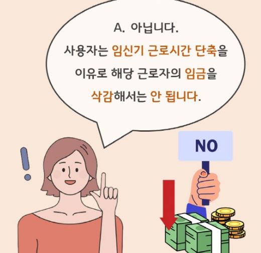 ▶임신기 근로시간 단축을 사용하게 되면 임금은 삭감되나요?